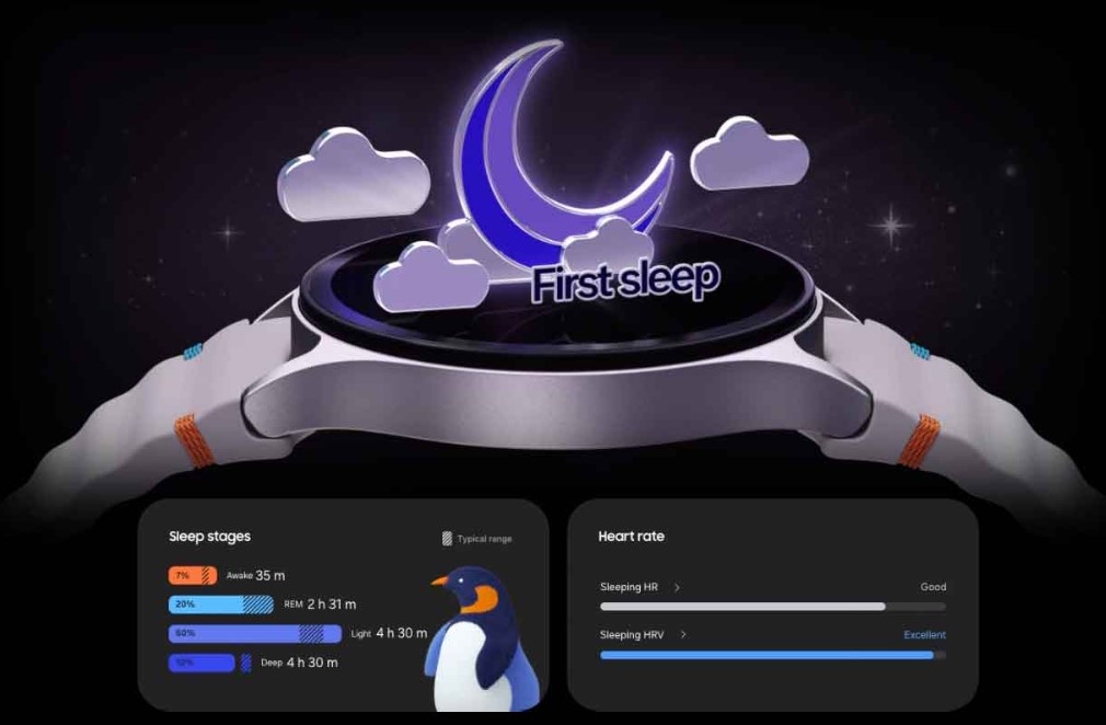 - 수면 분석: 수면 중 무호흡 감지 및 수면 코칭 기능으로 보다 체계적인 수면 관리 지원.