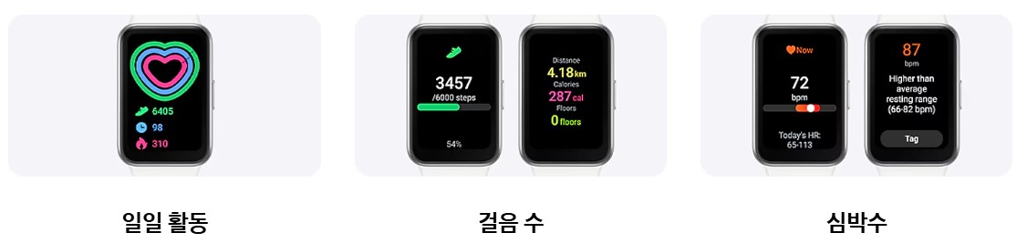 갤럭시 핏3는 단순히 시간을 확인하거나 알림을 받는 용도를 넘어, 사용자의 건강 상태를 실시간으로 모니터링하는 데 초점을 맞추고 있습니다. 다양한 센서들을 통해 사용자의 건강 상태를 실시간으로 모니터링하여 주요 건강 관리 기능을 제공합니다.
