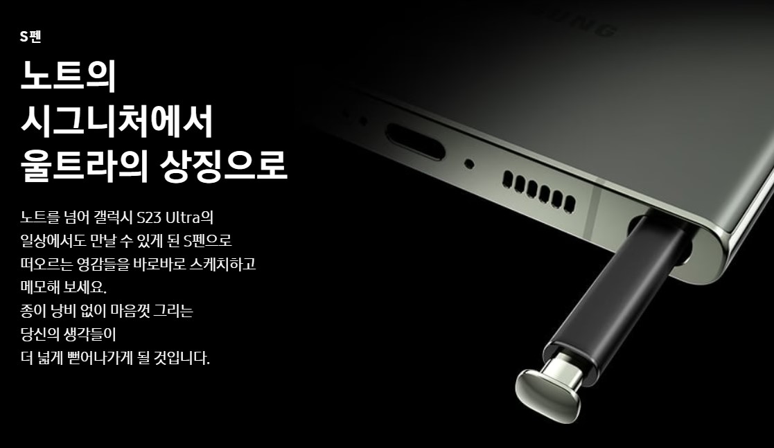 2021년부터 갤럭시와 합쳐진 S펜은 메모나 그림 그리기, 정밀한 조작이 필요한 작업에 유용하게 사용할 수 있습니다. 갤럭시 S23 울트라에는 S펜이 내장되어 있으며 삼성 DeX 지원, 초음파 지문인식 센서 등 다양한 추가 기능들도 제공됩니다. 이러한 기능들은 S24 울트라에서도 크게 달라지지 않은 부분입니다.
