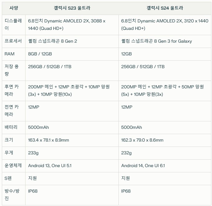 갤럭시 S24 울트라와 그 전작인 갤럭시 S23 울트라, 꼼꼼하고 객관적으로 비교하여 결정하기